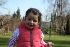 Przede wszystkim chodzi.Ciągle i wszędzie,upada i podnosi się i idzie dalej.Kiedy mamy inną koncepcje kierunku spaceru po prostu puszcza moją rękę i idzie tam gdzie ma ochotę.Szanujemy jej wybory więc w drodze do parku musimy odwiedzić warzywniak,jadąc do mgr Bunio zawsze wchodzimy do kwiaciarni a w drodze na SI witamy się z dziećmi w żłobku.Hania chodzi i to daje jej ogrom możliwości poznawczych a nas zmusza do ciągłego opowiadania i odpowiadania na pytające spojrzenia.